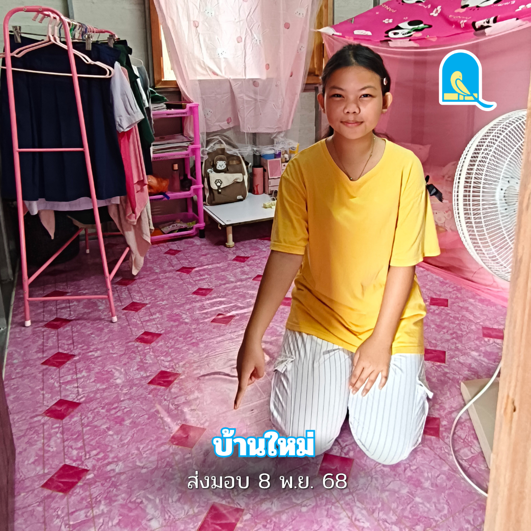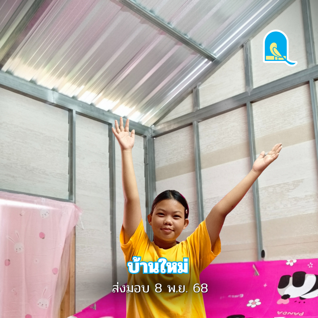 > “หนูขอขอบคุณมูลนิธิบ้านนกขมิ้น ขอบคุณผู้ใหญ่ใจดี และเทศบาลตำบลกองควายค่ะ ที่ทำให้หนูได้มีบ้านใหม่ที่แข็งแรงและปลอดภัย หนูดีใจที่ไม่ต้องกลัวว่าน้ำฝนจะหยดเวลานอน หรือกลัวแมลงมีพิษจากพื้นบ้านอีกแล้วค่ะ”