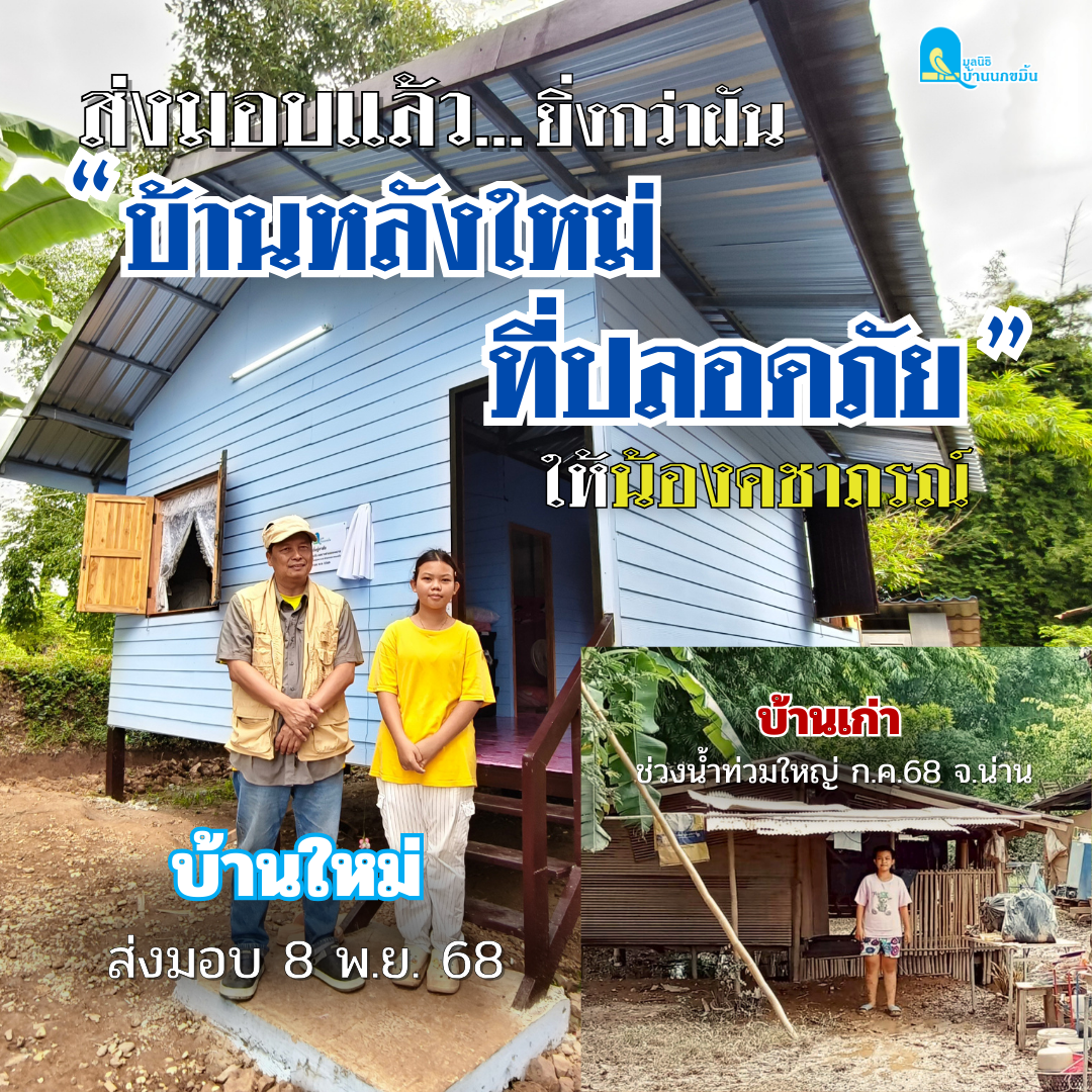 มูลนิธิบ้านนกขมิ้นร่วมกับเทศบาลตำบลกองควาย ส่งมอบบ้านใหม่ให้น้องคชา หลังประสบภัยน้ำท่วมใหญ่จังหวัดน่